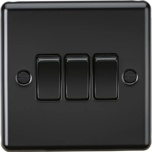 Knightsbridge: CL4MBB, 10AX 3G 2-Way Switch, Matt Black, Rounded Edge, IP20, 230V, EN 60669-1 Certified
