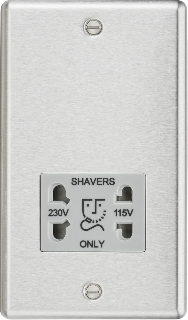 The 115/230V Dual Voltage Shaver Socket combines functionality with modern aesthetics, making it a perfect upgrade for any bathroom. Its rounded edge metal design adds a distinctive touch while providing the following features: