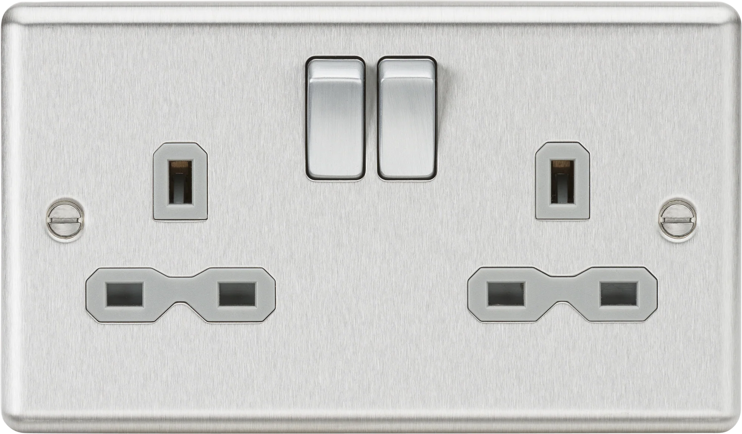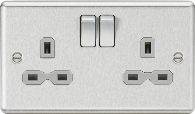 Knightsbridge: CL9BCG, 13A 2G DP Switched Socket, Brushed Chrome Finish, Grey Insert, Double Pole, BS 1363:2 Compliant