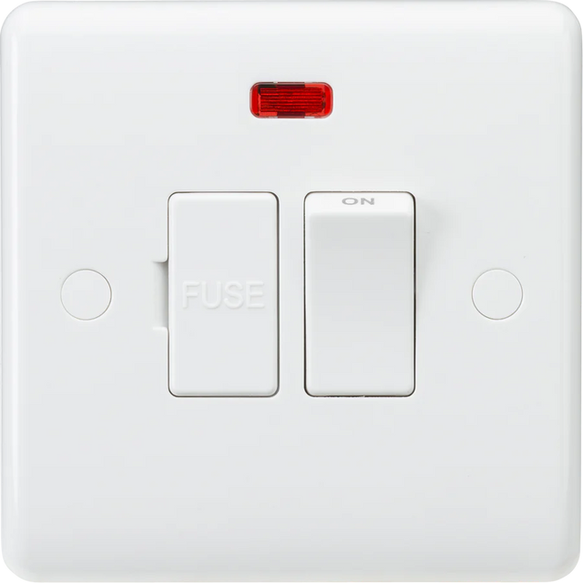 Knightsbridge: CU6300N, 13A Switched Fused Spur Unit with Neon Indicator, White, IP20, Curved Edge Design