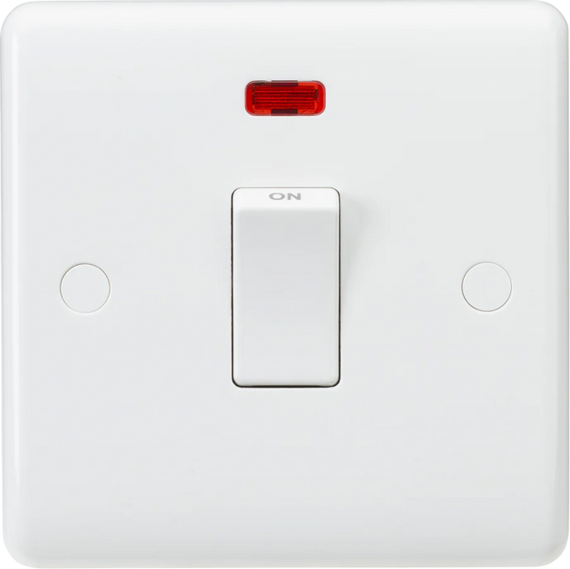 Knightsbridge: CU8341N, 20A Double Pole Switch, Neon Indicator, Curved Edge Design, White Thermoset Resin, IP20, 230V